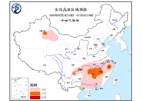 中新網(wǎng)7月14日電 據(jù)中國氣象局網(wǎng)站消息,中央氣象臺14日繼續(xù)發(fā)布高溫橙色警報:預計,今天下午到明天中午,江淮南部和西部、江漢大部、江南大部、華南中北部、四川盆地東部、重慶、貴州東部、南疆東部等地將有35℃以上的高溫,其中,湖南中東部、江西西北部、浙江西北部、重慶西南部以及吐魯番盆地等地的部分地區(qū)最高氣溫可達37~38℃。