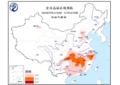中新網(wǎng)7月15日電 據(jù)中國(guó)氣象局網(wǎng)站消息,中央氣象臺(tái)15日06時(shí)繼續(xù)發(fā)布高溫橙色警報(bào):預(yù)計(jì),今天白天,江漢大部、江南、華南中北部、貴州東部、重慶、四川盆地東部、陜西東南部、河北大部及京津地區(qū)等地將有35℃以上的高溫,其中,浙江北部、安徽東南部、江西中西部、湖南大部、湖北西南部、重慶大部等地的部分地區(qū)最高氣溫可達(dá)37~39℃。