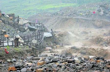 洪水沖毀青川縣東河口地震遺址公園景區(qū)內(nèi)部分游步道,淹沒東河口小學(xué)遺址;大雨造成的泥石流沖毀景區(qū)紀(jì)念廣場,部分路面受損,山洪還沖走移動小賣亭,遺址公園周邊農(nóng)戶房屋也不同程度受損。