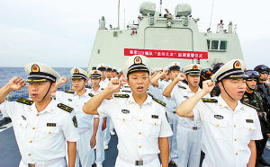 宣誓后,編隊指揮員、東海艦隊副司令員王志國代表全體官兵表示:“要以實(shí)際行動,為維護(hù)國家利益貢獻(xiàn)力量!為人民軍隊添光彩!為偉大祖國爭榮譽(yù)!”