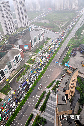 此外,由于暴雨天氣的出現(xiàn),重慶主城內(nèi)環(huán)、成渝、渝武,渝遂等四條高速公路已經(jīng)實(shí)行全程封閉,其中百余輛車因成渝高速二郎收費(fèi)站封閉造成堵塞。主城公交車多因積水熄火或無(wú)法前行,主城多出交通大動(dòng)脈堵塞數(shù)小時(shí)。