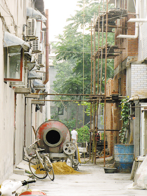 昨天上午,記者從位于談固東街的大門進(jìn)去,首先映入眼簾的是一棟剛建好的四層樓。繼續(xù)往里走,道路上不時(shí)出現(xiàn)小型攪拌機(jī)的影子,一堆堆的沙土堆放在道路中間。