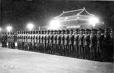 受檢的時刻終于來臨。1958年9月30日下午,我們“湘軍方隊”停止了訓練,轉入受閱時的著裝和衛(wèi)生準備,熨衣服、擦皮鞋、縫襯肩、釘領花、安肩章、洗澡、理發(fā)、刮胡須忙個不停。下午5時,大家都穿上受閱著裝列隊檢查,全隊人員配帶的肩花都是中尉或上尉,這些平時曬得黑油油顯得有些老成粗放的“老兵”,一下子變得年青、標致、威武了;在激動心情的催促和新式著裝的反光照耀下,每個人的臉面變得白中帶紅、可親可愛了。