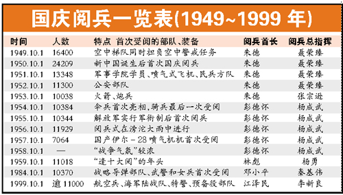 當(dāng)時(shí)空軍只有17架飛機(jī)能拿得出來,為了彌補(bǔ)飛機(jī)的不足,頭9架P-51戰(zhàn)機(jī)在前頭先飛,飛完后又繞到隊(duì)伍的尾巴上再飛。所以在外人看來以為是26架飛機(jī),實(shí)際上是17架。開國大典舉行時(shí),人民解放軍的海軍正在籌建中,還沒有具備戰(zhàn)斗力的軍艦,中央軍委仍安排海軍分隊(duì)參加閱兵。閱兵分列式開始,第一個(gè)通過城樓主席臺前的就是水兵分隊(duì)。