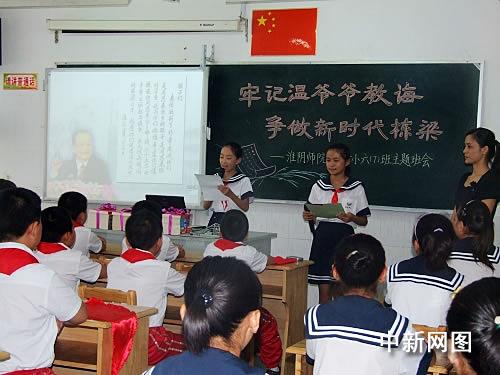 主題班會上,淮陰師范學(xué)院第一附屬小學(xué)的學(xué)生們還向淮安全市的少先隊員發(fā)出了“牢記溫爺爺?shù)慕虒?dǎo),像周總理一樣從小樹立‘為中華之崛起而讀書’遠(yuǎn)大志向”的倡議;窗彩形瘯泟⒂乐、淮安市委常委、宣傳部長劉希平等領(lǐng)導(dǎo)參加了主題班會,并向孩子們贈送圖書,鼓勵孩子們牢記溫總理的教導(dǎo),好好學(xué)習(xí),將來為家鄉(xiāng)的建設(shè)做貢獻(xiàn)。