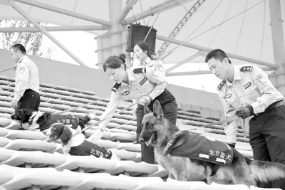 來(lái)自北京、天津、內(nèi)蒙古等11個(gè)省市及解放軍北京軍犬基地的近200條國(guó)慶安保警犬,近日亮相北京警察訓(xùn)練總隊(duì),進(jìn)行國(guó)慶安保集體誓師。據(jù)了解,這些警犬目前正在警察訓(xùn)練總隊(duì)進(jìn)行專業(yè)技術(shù)強(qiáng)化訓(xùn)練,在國(guó)慶安保工作中,這支警犬技術(shù)隊(duì)伍將承擔(dān)搜爆、安檢以及刑事案件、突發(fā)事件現(xiàn)場(chǎng)處置等多項(xiàng)工作。
