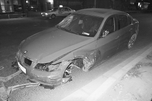 在滬南路陳春路口,這輛“瘸了腿”的牌號為滬G16281的紅色寶馬轎車仍停在路邊,右前擋風玻璃已碎成網(wǎng)狀,據(jù)說這是騎車人被撞后彈到擋風玻璃上所留下的。車的左前輪已不見蹤影……幾名目擊者回憶起事發(fā)經(jīng)過:由于滬南路正在拓寬,相向行駛的車輛公用北向南車道,地上劃有清晰的區(qū)分標識。誰料,這輛本應是由南向北行駛的寶馬車,竟駛上了北向南車道上,“當時‘寶馬’速度很快,直接就把那輛正常行駛的電動車撞了!睂汃R車將騎車人撞飛后,并未停車,而是繼續(xù)逆向前行,又與一輛相向行駛的銀色帕薩特轎車發(fā)生碰撞。