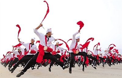 劉國超:安塞腰鼓特別值得期待。1000多名來自陜西的農(nóng)民,白衣紅鼓,在經(jīng)過天安門廣場時(shí)跳躍著打響歡鼓。這么大的規(guī)模,這么長的距離,邊行進(jìn)邊打腰鼓是一個(gè)很大的創(chuàng)新。這個(gè)節(jié)目的意義也很深遠(yuǎn),一方面我們不應(yīng)該忘記歷史上農(nóng)民為中國革命作出的貢獻(xiàn),另一方面也體現(xiàn)了當(dāng)代社會(huì)主義新農(nóng)村中農(nóng)民嶄新的精神風(fēng)貌。