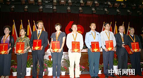 中新網(wǎng)武漢9月21日電 (記者 艾啟平)他們的殷殷鮮血曾經(jīng)染紅荊楚大地,他們的錚錚鐵骨曾經(jīng)激勵了一代又一代人……“新中國成立60年,功勛湖北100人”頒獎大會9月21日在武漢隆重舉行。中共湖北省委書記羅清泉、湖北省委副書記楊松等出席大會并頒獎。