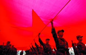 國旗和鮮花,全部都由該方陣的戰(zhàn)士們舉起,不過到時候他們不會身穿軍裝,而是改著便裝———托舉國旗的將著紅色服裝,舉鮮花的則著白色服裝。