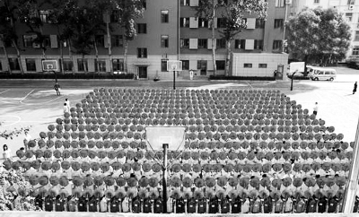 在每次大的集體演練前,師生們都要面對(duì)學(xué)校珍藏的曾經(jīng)在天安門廣場(chǎng)高高飄揚(yáng)的五星紅旗高唱國(guó)歌,莊嚴(yán)宣誓。此外,學(xué)校利用誓師大會(huì)、動(dòng)員會(huì)、表彰會(huì)對(duì)學(xué)生加以正確引導(dǎo);利用家長(zhǎng)會(huì)、校通訊平臺(tái)爭(zhēng)取家長(zhǎng)的理解與配合;組織學(xué)生集體觀看電影《大閱兵》,給學(xué)生以精神支持;讓學(xué)生每天記錄訓(xùn)練日記,留給學(xué)生難得的人生財(cái)富……“祖國(guó)就在我心中”、“我與祖國(guó)共奮進(jìn)”成為了艱苦訓(xùn)練過(guò)程中學(xué)生發(fā)自心底的吶喊。