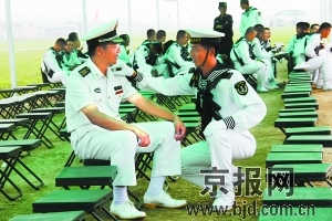在水兵方隊,何健和何煒是一對鮮為人知的父子。父親何健先后參加了國慶35周年、國慶50周年國慶首都閱兵,加上這次以水兵方隊政委的身份參加新中國成立60周年國慶首都閱兵,他已經(jīng)是第三次來到閱兵村。兒子何煒去年底參軍入伍并被挑選為水兵方隊受閱隊員。9歲時,何煒因爸爸參加受閱任務(wù)無暇照顧自己,還經(jīng)?拗鴮寢屨f“爸爸是不是不要我了”。10年后,這個非軍校不上的“犟小伙”毅然放棄上地方大學(xué)的機會,不顧媽媽的勸說,參軍來到部隊。