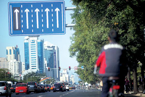 除指路標(biāo)志更新外,長安街上的導(dǎo)向標(biāo)志也將全面更新。因為長安街上主要路口都為禁左路口,所以這些導(dǎo)向標(biāo)志變化更大的就是禁左標(biāo)志的變化。