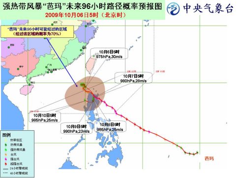 受“芭瑪”和南下冷空氣的共同影響,6日白天到夜間,巴士海峽、巴林塘海峽、南海東北部和中部偏東海域、臺灣海峽將有7-9級大風(fēng),“芭瑪”中心經(jīng)過的附近海域的風(fēng)力有10-11級,陣風(fēng)可達(dá)12-13級,臺灣以東洋面、臺灣沿海、浙江沿海、福建沿海、廣東東部沿海也將有7-8級大風(fēng),部分海域或地區(qū)陣風(fēng)可達(dá)9-10級;臺灣東部將有大到暴雨,其中臺灣東北部和南部有大暴雨,局部地區(qū)有特大暴雨。