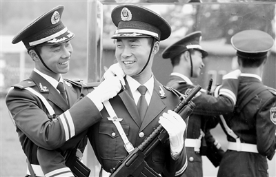 走過受閱訓練場,記者發(fā)現(xiàn),國防生曾習慣于敲打鍵盤的雙手,擺臂剛勁有力;曾穿梭于教室、圖書館的雙腿,踢正步筆直成線。作為高學歷的青年一代軍人,他們沒有經(jīng)歷火熱軍營的洗禮、重大任務的考驗,然而,在閱兵這個平臺上,他們已經(jīng)用出色的表現(xiàn),把忠誠和剛強融入身心、植入血脈。