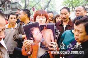 交警暫時(shí)將公路封道,圍觀人群將法院大門圍得水泄不通。9時(shí)40分,兩輛交警警車前后開道,3輛法警車夾在當(dāng)中,5輛警車單獨(dú)押解著謝才萍回看守所。5分鐘后,其他被告人才被警車押解回看守所。