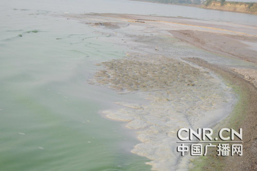 雖然,開源石料廠今天停產,排污不再進行,但是記者依然在巢湖邊的污水口看到以前排污留下的種種“罪狀“,該廠的排污口直徑約20厘米,以前洗砂后的廢水就順著巢湖廣闊的湖岸的接排入湖內,現在湖岸邊已經形成一片污水區(qū),與湖中心清澈的水形成鮮明的對比,又稠又粘顏色暗黑發(fā)散著難聞的味道。記者順著湖邊的排污道走了一圈,身上馬上被一層灰籠罩,也讓人馬上想到平時這個廠開足馬力生產時候的烏煙瘴氣以及對環(huán)境造成的惡劣影響。