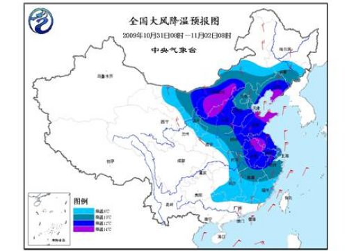 上述地區(qū)的氣溫也將先后下降8~10℃,其中,內(nèi)蒙古中部、山西北部、河北南部、遼寧大部、山東、江蘇、安徽等地的部分地區(qū)降溫可達12~14℃。