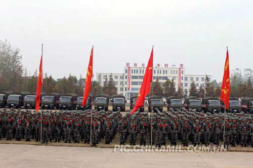 下午15時,該部幾百臺車輛浩浩蕩蕩駛下107國道回到駐地廣水。營區(qū)門口,紅旗招展、彩條高掛,鑼鼓、鞭炮齊鳴,全部留守官兵整齊列隊歡迎部隊凱旋。