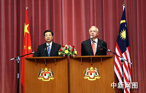 會(huì)談結(jié)束后,胡錦濤和納吉布出席兩國(guó)合作文件簽字儀式并共同會(huì)見記者。中午,胡錦濤出席納吉布舉行的午宴。