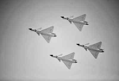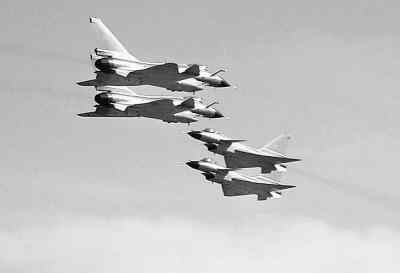 答:這個隊形,我們比俄羅斯“雨燕”飛行表演隊的要窄,和美國空軍“雷鳥”飛行表演隊的一樣,比美國海軍“藍天使”飛行表演隊稍大一些。