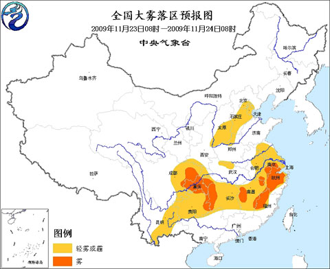 中國氣象局與交通運輸部2009年11月22日聯(lián)合發(fā)布的全國主要公路氣象預(yù)報中受霧影響的主要路段有: