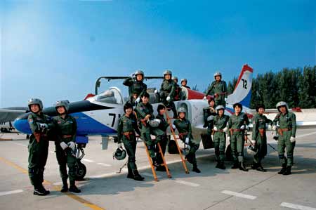 這個英雄群體共有16名殲擊機女飛行員,分別來自陜西、遼寧、河北、山東、山西、四川、江蘇、浙江、湖北9個省,最大24歲,最小22歲,是空軍2005年招收的第8批女飛行學員中的佼佼者。4年來,她們輾轉(zhuǎn)航空大學、兩所飛行學院,歷經(jīng)基礎教育、初教機訓練、高教機訓練3個階段,實現(xiàn)了從一名高中生到軍人再到女飛行員的人生飛躍。她們用堅韌、智慧克服了常人難以想象的困難,從仰望藍天到擁抱藍天并最終融入藍天。在她們身上,既承載著中國軍人的共同使命,也閃爍著自己特有的光芒。