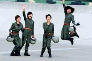 10月1日上午,盡管首都北京上空陽光明媚,但殲擊機(jī)女飛行員駐訓(xùn)的華北某機(jī)場,云底高500米、云頂高1200米,能見度只有1.3公里。這種情形下能不能按時起飛,既是意志的考驗,也是生死的考驗。她們以忠誠無畏的戰(zhàn)斗決心,迅速確定了長僚機(jī)組500米跟進(jìn)起飛集合方案,梯隊飛機(jī)56秒內(nèi)一次全部升空。梯隊飛到1200-1300米高度,一直在兩個云層的夾縫中飛行,直到通州上空氣象條件好轉(zhuǎn)后才穿出云層。到達(dá)天安門廣場上空時,面臨氣流較大、自重較輕的教練機(jī)嚴(yán)重顛簸的情況,姑娘們以良好的心理素質(zhì)和過硬的飛行技術(shù),保持了隊形和精度,秒米不差地通過人民英雄紀(jì)念碑上空。