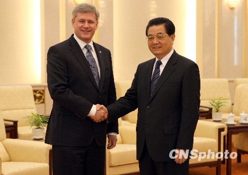 胡錦濤說,時隔20天,很高興和哈珀在北京再次見面。這是哈珀就任加拿大總理后第一次訪華,意義重大。相信此訪一定有助于增進相互了解,擴大務實合作,把中加友好合作關系提高到一個新的水平。