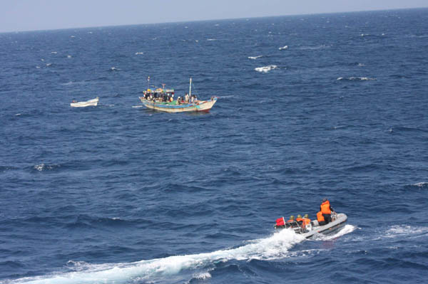 中新網(wǎng)12月21日電 據(jù)國(guó)防部網(wǎng)站消息,中國(guó)海軍第三批護(hù)航編隊(duì)在亞丁灣、索馬里海域執(zhí)行護(hù)航任務(wù)時(shí),針對(duì)海盜活動(dòng)的情況規(guī)律創(chuàng)新出許多反海盜新戰(zhàn)術(shù),充分提高了護(hù)航效率。