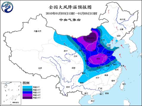 受強(qiáng)冷空氣影響,今天下午至后天中午,內(nèi)蒙古中西部、西北地區(qū)東部以及淮河以北大部地區(qū)將先后有4~6級(jí)、陣風(fēng)7級(jí)偏北風(fēng),內(nèi)蒙古中西部、西北地區(qū)東部、華北、黃淮、江淮、江漢、江南北部、貴州、重慶等地氣溫將下降8~12℃,其中,內(nèi)蒙古中西部、陜西北部、山西北部、黃淮西部等地的部分地區(qū)降溫幅度可達(dá)14~16℃,局部可達(dá)16~18℃。