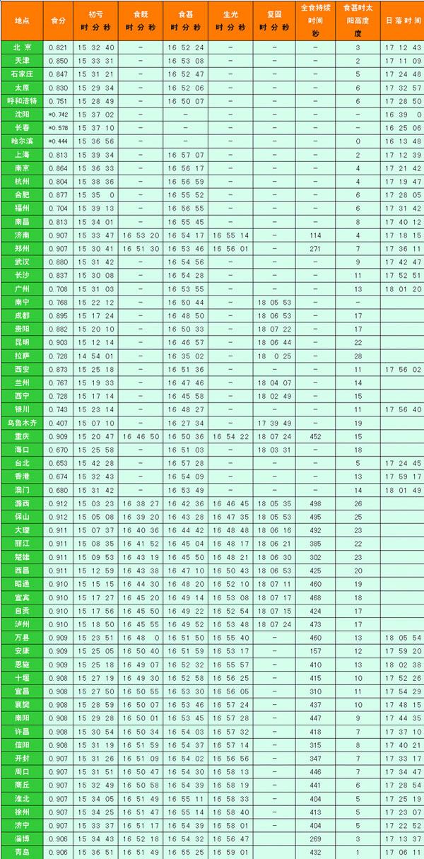 以下是不同地點(diǎn)的時(shí)間見食帶表: