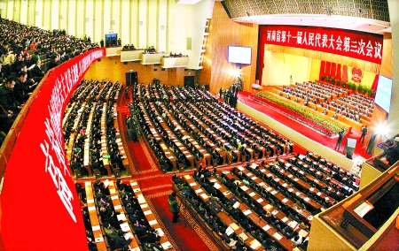 深入貫徹落實科學(xué)發(fā)展觀,奮力譜寫中原崛起新篇章。1月25日上午,河南省十一屆人大三次會議在省人民會堂隆重開幕。來自全省各地的省人大代表共聚一堂,共謀河南發(fā)展大計。