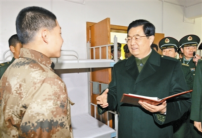 1月的關(guān)中大地寒風(fēng)襲人,軍營里卻暖意融融。正在陜西省考察工作的中共中央總書記、國家主席、中央軍委主席胡錦濤,專程來到蘭州軍區(qū)某部高炮旅視察。