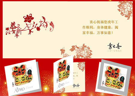 據(jù)悉,李長春同志寄送的這張賀卡由2008年北京奧運會吉祥物福娃的總設(shè)計者、著名藝術(shù)家韓美林特別設(shè)計。