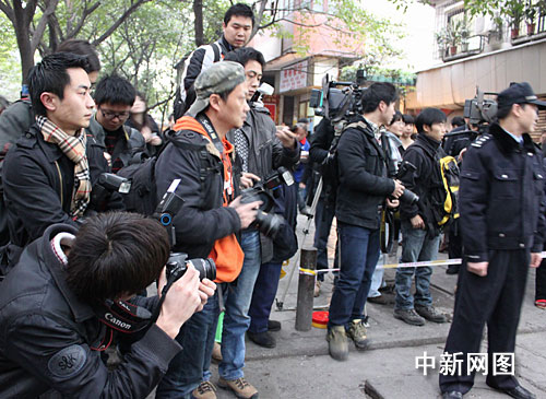 從早上7點(diǎn)開始,來自境內(nèi)外的各路記者便已經(jīng)在警戒頗嚴(yán)的重慶市第五中級(jí)人民法院門口守候,一些攝影愛好者也加入拍攝的隊(duì)伍,在很長(zhǎng)一段時(shí)間里,在法庭外守候的記者多過圍觀的市民。記者看到,盡管法庭臨時(shí)增設(shè)加座,但也并非所有到場(chǎng)媒體能夠進(jìn)去旁聽,不少?zèng)]有拿到旁聽證的媒體記者仍然早早的來到法院門口,希望能采訪到現(xiàn)場(chǎng)新聞和更快的得到一些消息。
