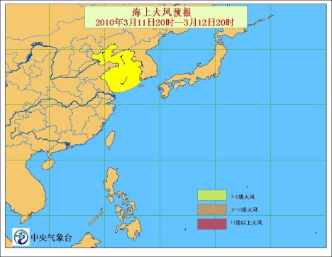 預(yù)計(jì),11日20時(shí)至12日20時(shí),受冷空氣的影響,渤海將有7~8級(jí)、陣風(fēng)9級(jí)偏北風(fēng);黃海大部海域?qū)⒂?~8級(jí)、陣風(fēng)9級(jí)的西南風(fēng)轉(zhuǎn)偏北風(fēng);東海北部海域?qū)⒂?~7級(jí)西南風(fēng)。其他海域天氣海況條件較好。