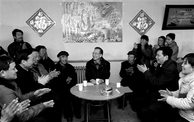 在蘇洪喜的家中,溫家寶向鄉(xiāng)親們介紹了政府的三農(nóng)工作,懇請鄉(xiāng)親們對政府工作提意見。