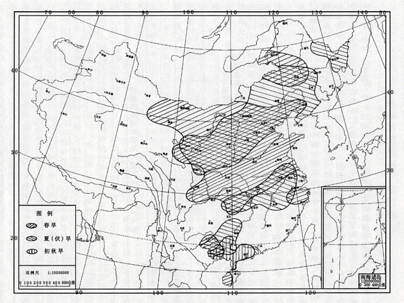 2000年,我國大部地區(qū)降水偏少,出現(xiàn)大范圍干旱。就季節(jié)而言,干旱主要發(fā)生在春、夏季;就地區(qū)而言,北方受旱范圍廣,干旱時(shí)間長,旱情重,而南方受旱范圍小,干旱時(shí)間短,旱情也較輕。據(jù)有關(guān)部門統(tǒng)計(jì),全國累計(jì)受旱面積4054萬公頃,成災(zāi)面積2678萬公頃,與1971年以來-的平均值相比,均顯著偏多,屬干旱嚴(yán)重年份。其中受旱面積較大或旱情較重的有河北、山西、內(nèi)蒙古、山東、陜西、甘肅、寧夏、遼寧、吉林、黑龍江、湖北、安徽、江西等省區(qū)。