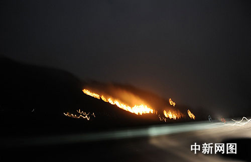 26日晚,中新網(wǎng)記者夜行貴州六盤(pán)水到安順市關(guān)嶺布依族苗族自治縣的路上,在不到三小時(shí)的時(shí)間里,連續(xù)看到5起正在燃燒的山火。其中,在青黃高速穿越的六枝特區(qū)安樂(lè)塘附近層層疊疊的大山中間,一條火龍?jiān)趲鬃降陌胙H蔓延肆虐,遠(yuǎn)遠(yuǎn)望去,猛烈的火勢(shì)映紅天際。而其他幾處山火亦是從山腰向上蔓延,有愈發(fā)猛烈之勢(shì)?吹缴交鸷,記者隨即撥打火警119,并從接線員處了解到,或因氣溫升高的原因,當(dāng)晚接到的森林火警數(shù)量較之前幾日陡增,消防部門正會(huì)同林業(yè)及相關(guān)單位協(xié)調(diào)調(diào)集人力滅火,但形勢(shì)仍不容樂(lè)觀。