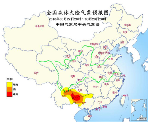中新網(wǎng)3月27日電 中央氣象臺27日17時發(fā)布森林火險氣象警報:根據(jù)最新的全國熱源點監(jiān)測資料顯示(2010年3月26日16時至2010年3月27日16時),黑龍江、吉林、內(nèi)蒙古、河北、河南、湖北、湖南、江西、廣東、廣西、貴州、云南監(jiān)測到熱源點。