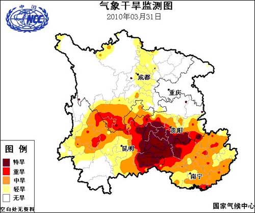 近日西南地區(qū)的降雨有利于降低當(dāng)?shù)厣只痣U(xiǎn)氣象等級(jí),使云南、貴州、廣西部分地區(qū)氣象干旱略有緩和。但對(duì)重旱區(qū)土壤墑情、特別是人畜飲水困難改善不大,抗旱形勢(shì)依然嚴(yán)峻。
