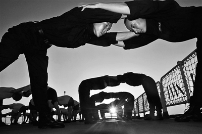 如今,“巢湖”艦官兵戰(zhàn)斗在護(hù)航第一線已經(jīng)3個(gè)多月了,官兵們每天做護(hù)航健身操的身影也成為亞丁灣、索馬里海域一道靚麗的風(fēng)景。(張旗 曹海華 曹金平)