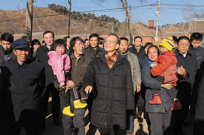 在世人驚艷中國速度、向往北京魅力的今天,地處光環(huán)邊緣的“盲區(qū)”、甚至被人遺忘的偏橋村,卻在共和國總理心中占據(jù)著特殊的位置:今年的全國兩會上,溫家寶在參加河北代表團討論時,在閉幕時的中外記者會上,兩次提及這個地方;2000年,2005年,2010年,溫家寶十年三訪偏橋村,并約定在退休后一定再來……