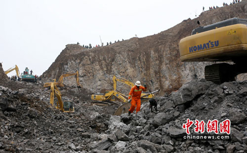 中新網(wǎng)峨眉樂(lè)都4月10日電(劉忠俊)10日14:55分,按照四川省公安消防總隊(duì)部署,成都市消防支隊(duì)政委馬昆帶著剛從沈陽(yáng)培訓(xùn)結(jié)束的兩只搜救犬以及訓(xùn)導(dǎo)員等趕到峨眉山市樂(lè)都鎮(zhèn)順江采石場(chǎng)山體垮滑現(xiàn)場(chǎng)增援搜救工作。經(jīng)過(guò)2只搜救犬現(xiàn)場(chǎng)三次搜尋,在垮塌現(xiàn)場(chǎng)找到一臺(tái)失蹤汽車(chē)。