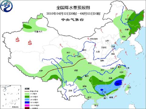 中央氣象臺(tái)2010年4月12日17時(shí)發(fā)布未來(lái)三天全國(guó)天氣預(yù)報(bào):