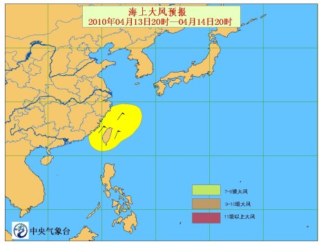 中新網(wǎng)4月13日電 中央氣象臺今日18時繼續(xù)發(fā)布海上大風預報:4月13日下午2時,黃海大部海域出現(xiàn)了6~7級西北風;東海大部海域、臺灣以東洋面出現(xiàn)了6~7級、陣風8~9級的東北風;臺灣海峽出現(xiàn)了7~8級東北風。臺灣海峽能見度不足10公里。其他海域天氣海況條件較好。