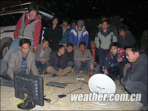 從青海省氣象局開出的應急車已經到達這里,在分派食物和水之后,省氣象局開始在現場指揮安裝設備,希望盡快恢復工作。