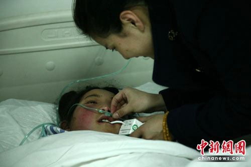 中新網(wǎng)成都4月15日電(鄢銀嬋 張浪)15日晚上21時30分,記者在四川省人民醫(yī)院急救中心急癥外科病房見到了14歲姑娘卓瑪拉姆,小姑娘剛剛做完檢查,主管護(hù)士陳學(xué)華告訴記者,卓瑪拉姆的傷主要集中在臀部和臉部,目前情況比較穩(wěn)定。