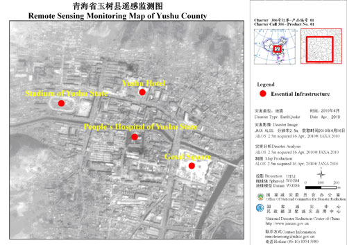 截至目前,通過國際減災(zāi)憲章(Charter)機(jī)制,已獲取災(zāi)前影像數(shù)據(jù)28景、災(zāi)后4景,為青海玉樹地區(qū)房屋倒損、基礎(chǔ)設(shè)施損毀、次生災(zāi)害等情況的評估工作提供了重要的數(shù)據(jù)基礎(chǔ),發(fā)揮了重要的決策支持作用。與此同時,向中國氣象局進(jìn)行了共享。